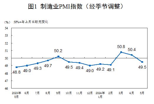 5月份,制造业采购经理指数(PMI)为49.5%,比上月下降0.9个百分点,制造业景气水平有所回落。