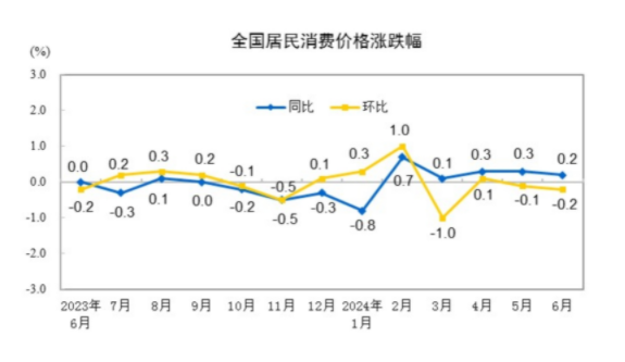 2024年6月份居民消费价格同比上涨0.2%